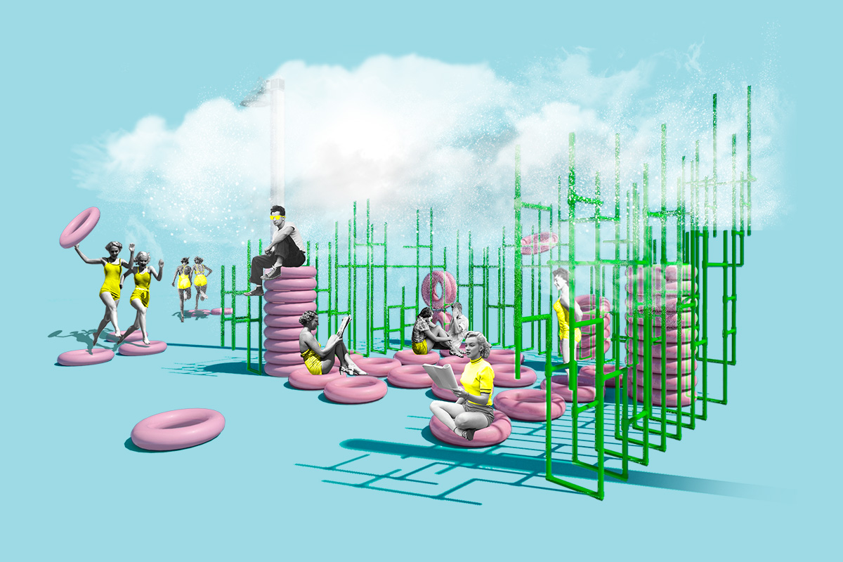 agua corre por un bosque de tubos plásticos, y al encontrar las alturas, forma
